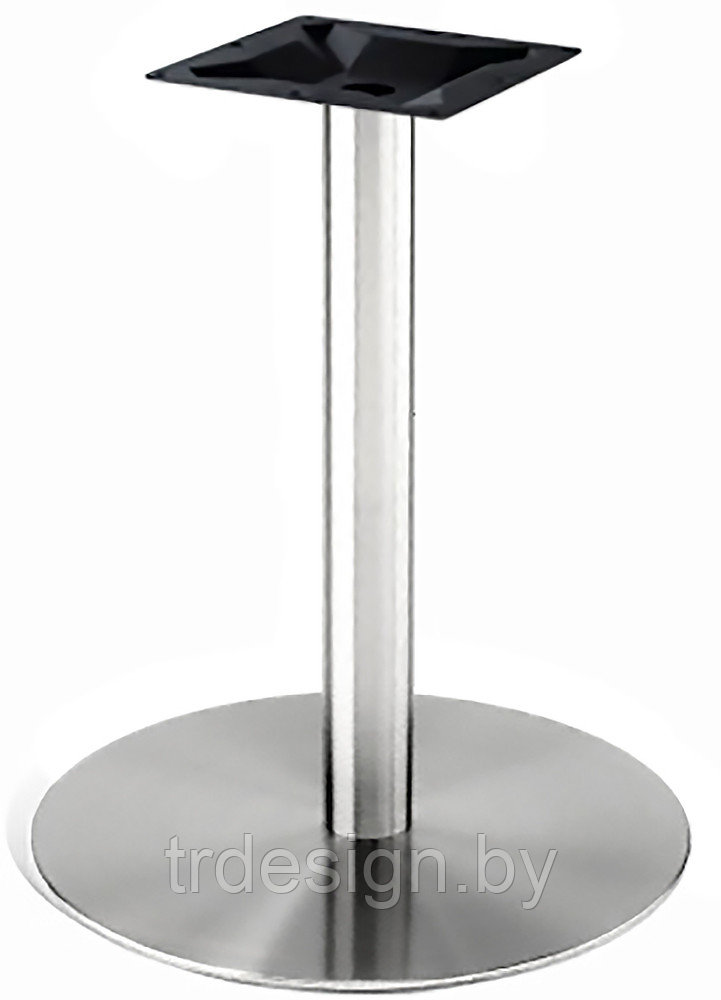 Подстолье из полированной нерживеющей стали (матовое). Размер крестовины: D45 см, диаметр трубы 7,6 см. Рекомендуемый размер столешницы: D-110