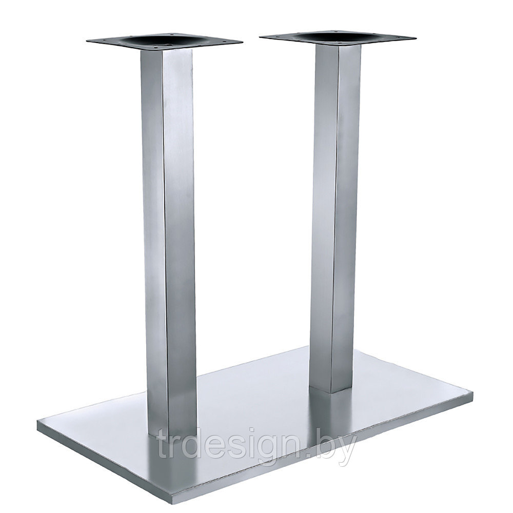 Подстолье из полированной нержавеющей стали (матовое). Размер крестовины: D45 см, трубы 8*8 см. Рекомендуемый размер столешницы: 140х80