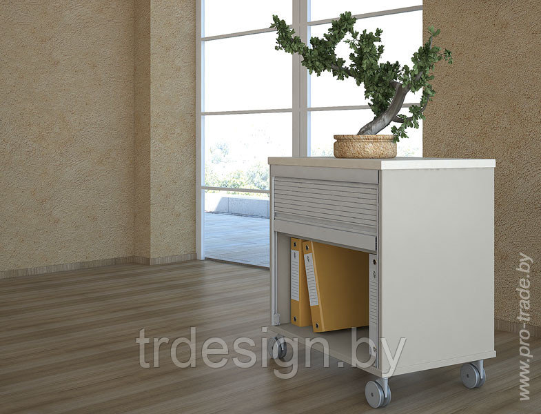 Ещё одним оригинальным решением коллекции «Кредо» является применение ролет вместо обычных дверей для стеллажей и контейнеров. Этот функциональный и необычный элемент экономит пространство, придаёт современный стиль Вашему офису.