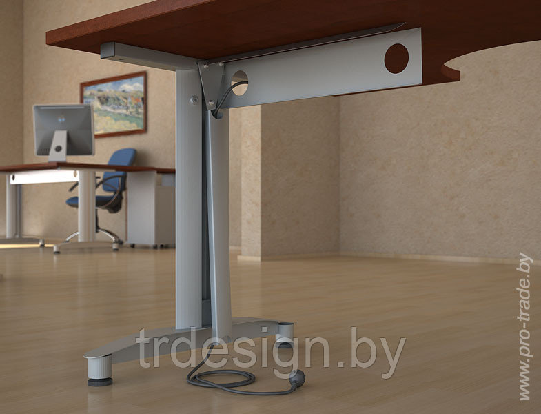 В коллекции «Кредо» сетевые кабели и прочие коммуникации скрываются в конструкции металлических оснований столов и больше не портят вид Вашего офиса.