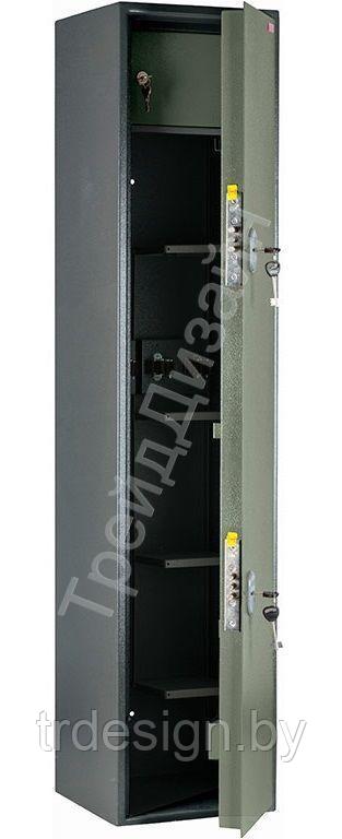 толщина металла корпуса и двери – 2 мм оборудованы патронным отделением, запирающимся на ключ, полками и ложементами для ружей